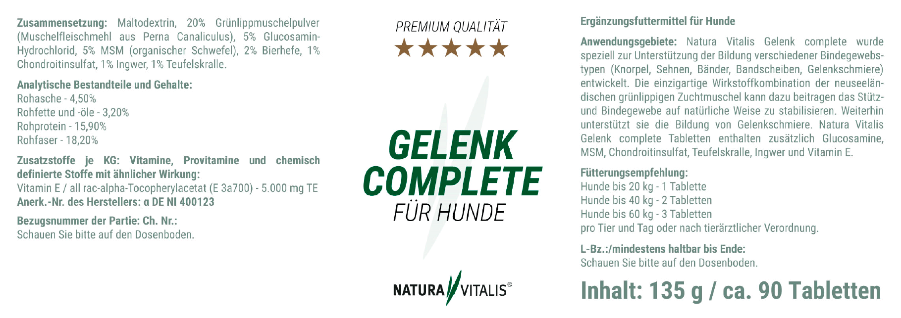 NATURA VITALIS Gelenk complete für Hunde - 90 Tabletten
