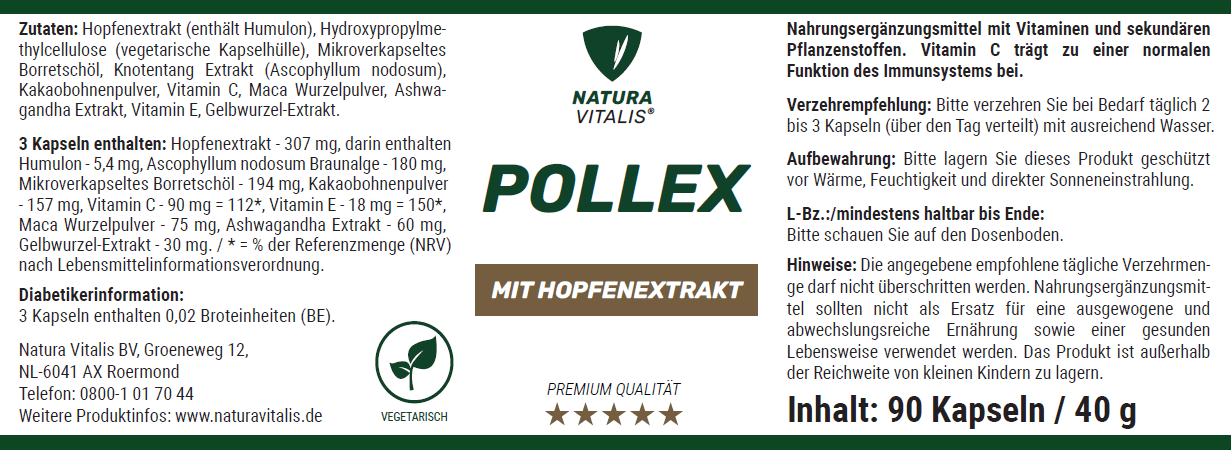 Vitamin C – Es ist allgemein bekannt, welche wichtige Rolle Vitamin C zur natürlichen Unterstützung des Immunsystems einnimmt und damit selbstverständlich ebenfalls in Pollex vertreten ist.